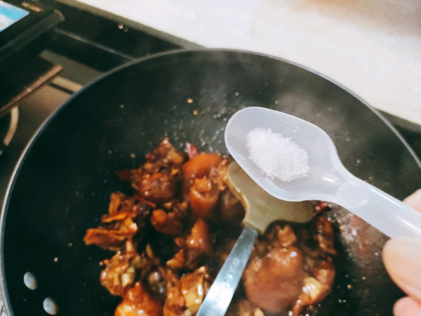 最后根据自家囗味加入盐调味。蚝油和老抽已经够咸,加盐时注意用量。