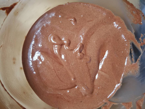 取三分之一蛋白霜加入可可蛋黄糊内拌匀。