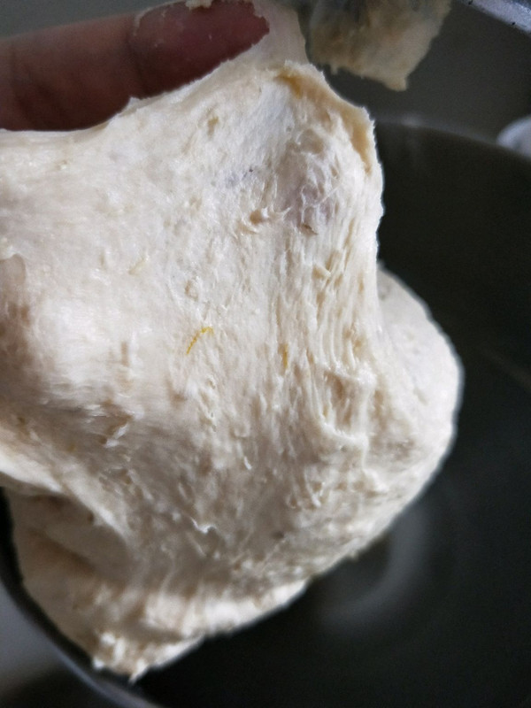 然后加入软化的黄油和盐中速揉,不看时间就看状态。每个厨师机揉出来的状态和时间是不同的