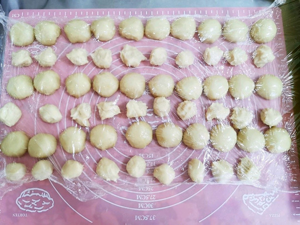 松弛好的油皮,分成30份,油酥分成30份,松弛20分钟。