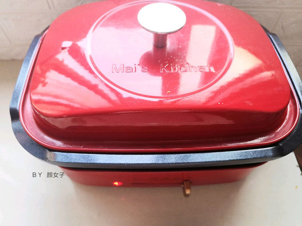 美食锅加入500毫升水,放入盘盖上锅盖开始蒸