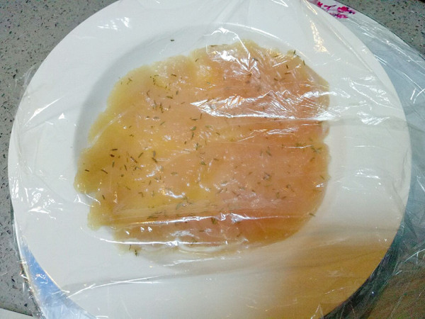 用底下铺的保鲜膜把鸡肉紧紧的卷起来,注意一定要卷的紧一些,两头拧几圈。