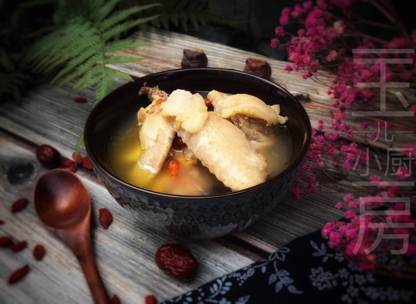 鸡块、红枣、花旗参一起放入炖锅中,加入足量的清水。