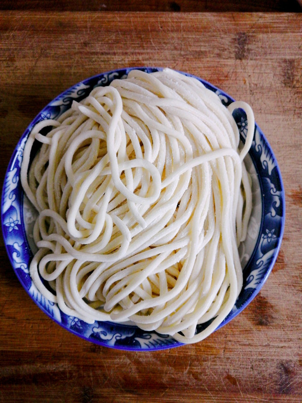面条煮好后,淋上炸酱汁搅拌均匀撒上葱花开吃吧