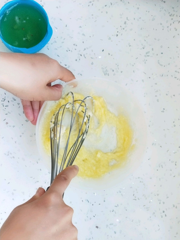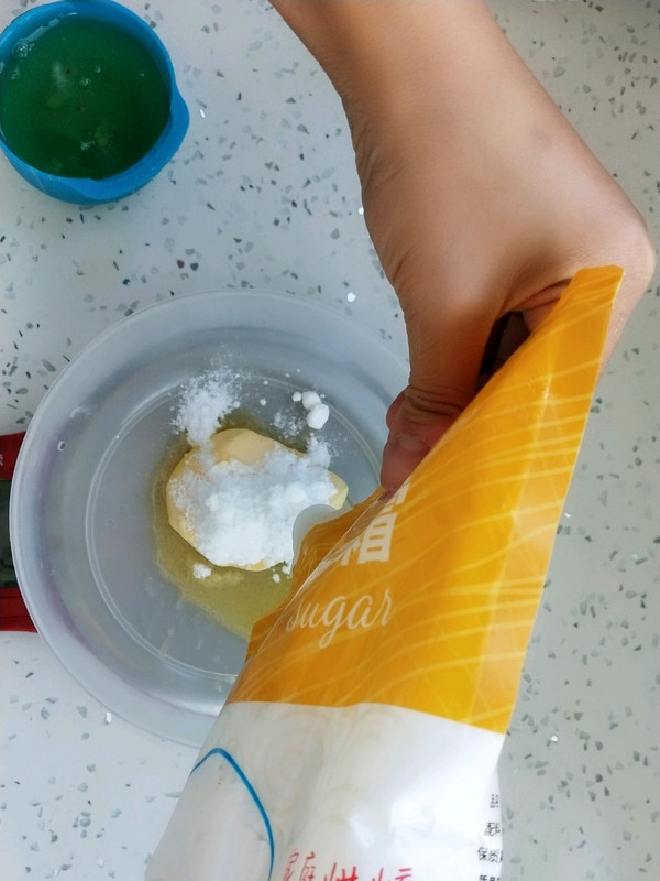 用手动打蛋器把黄油和糖粉搅打均匀!