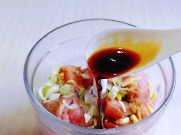 再加入生抽,蚝油,启动绞肉机绞成肉糜。