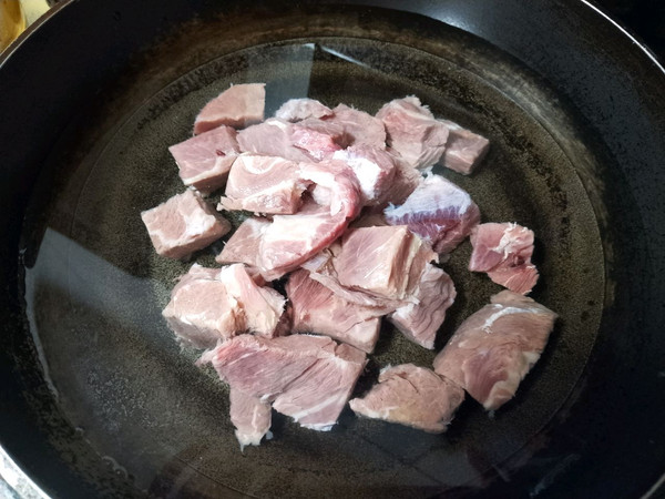 解冻好的牛上脑块冷水下锅,煮15分钟。捞出冲洗一下。