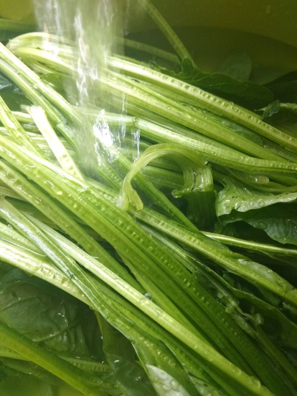 准备食材,菠菜,蒜头。