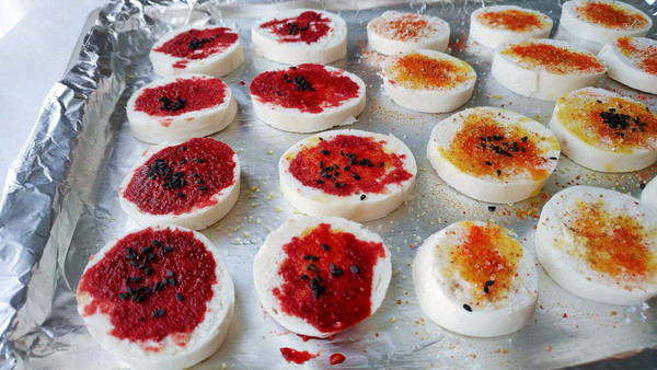 把不小心剩到超干硬的馒头努力切成片,码到铺过锡纸刷了油的烤盘上