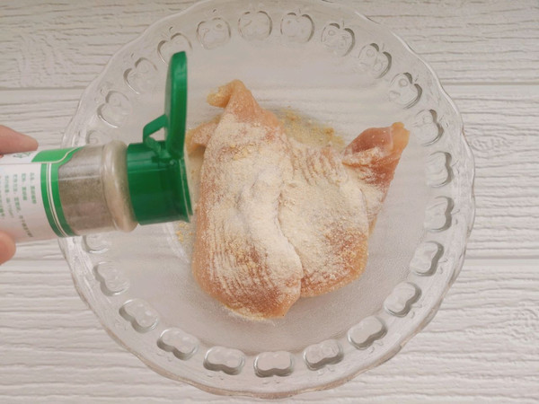 胡椒粉,大蒜粉,姜粉,盐,油,孜然粉鸡胸肉倒入同一容器中带上手套,再次给鸡按摩几分钟。