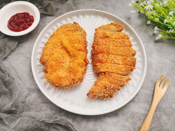 上鸡排啦!就这样吃已经很好吃了,喜欢番茄酱的伙伴可以挤点番茄酱一样很好吃哦!