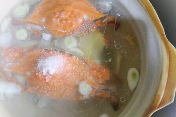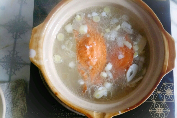 倒入热开水,放入盐搅拌均匀开大火煮开。