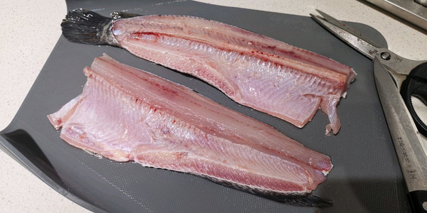 鱼肉沿背脊剖开成两半