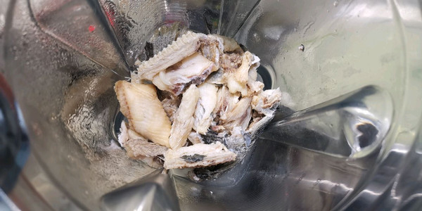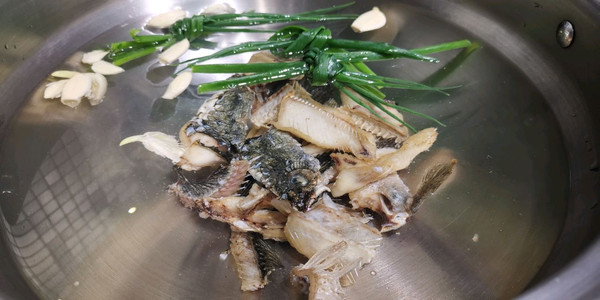 鱼骨,切成块 放日盆内,冲洗一下