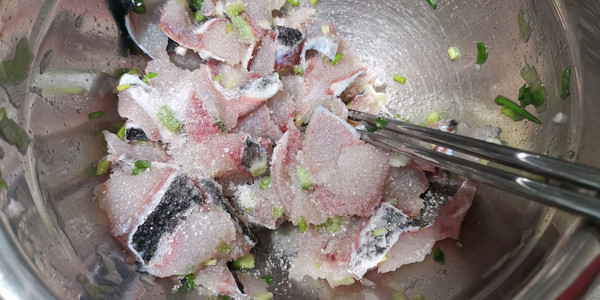 鱼片里放入葱花,料酒,去腥