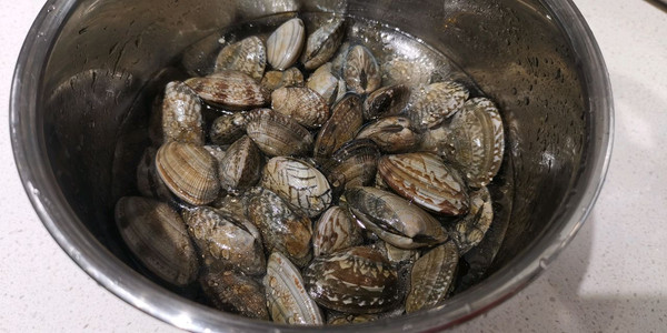蛤蜊洗净2-3遍 放入水+1小匙盐,几滴芝麻油 让蛤蜊吐沙,静置