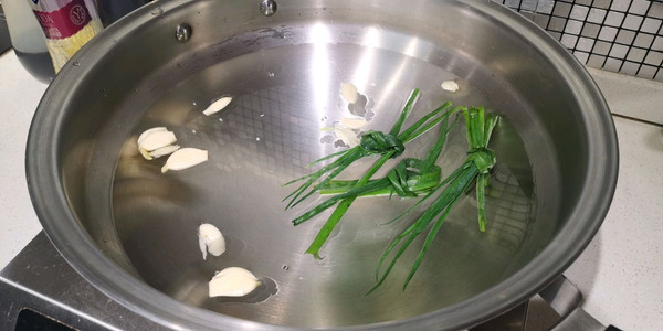 汤锅,水+葱结+蒜 大火煮开