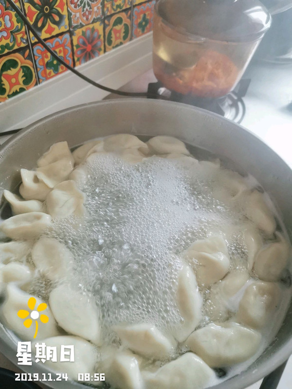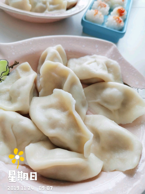 面团醒好。开始包饺子吧,对折,虎口捏住