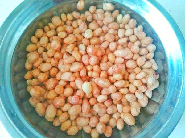 浸泡好的花生米清洗干净用剥掉花生米外皮,放入容器中备用。