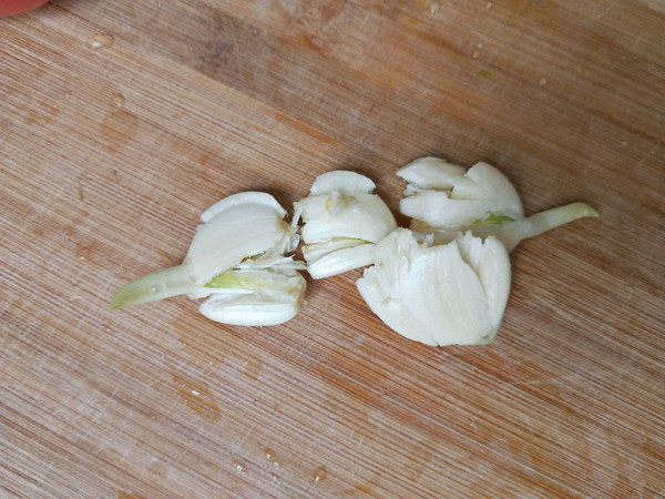 热锅倒油,油热后放入拍碎的大蒜瓣炒出香味来!
