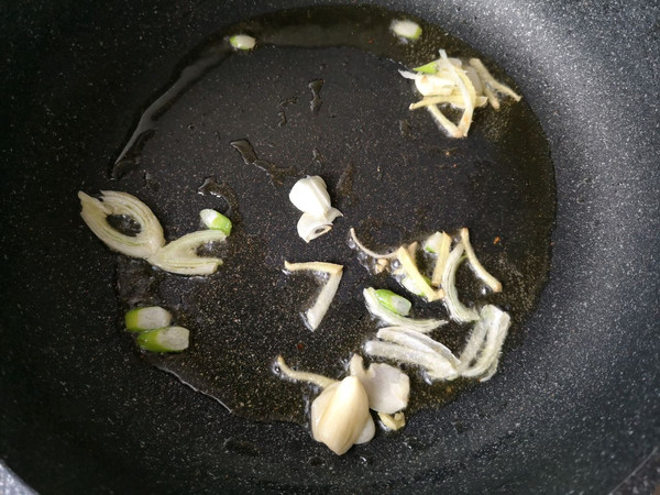 锅中适量油烧热,下葱姜蒜爆出香味。