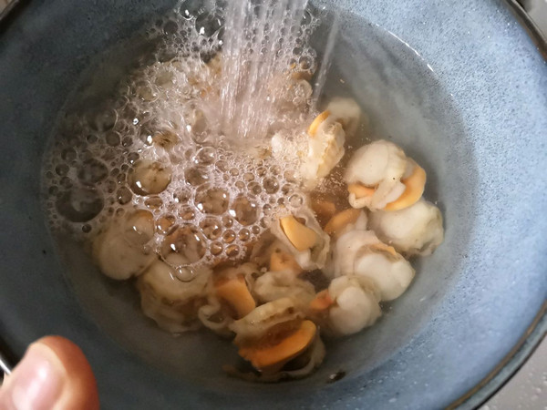 将处理好的扇贝肉入锅。