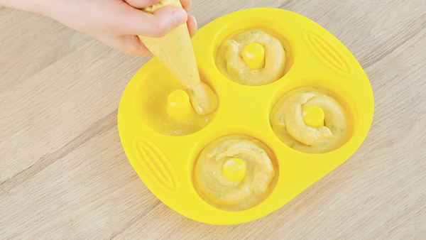 »烘烤过程中,面糊的体积会膨胀,所以妈妈们不要挤得太满。