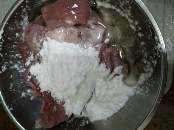 放入碗中,加入淀粉和油抓均,腌制10分钟