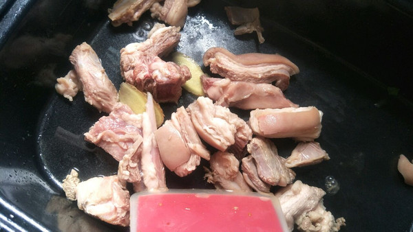 盖上盖子大火煮开,转小火焖煮至羊肉熟烂。