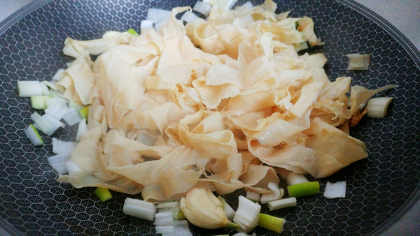随便划拉两下扔提前泡好收拾干净顺手撕成自己喜欢样子的油豆皮