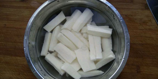 准备辅料:料酒30克、大葱1颗西洋参15克、党参15克、生姜50克、绵山药300克备用