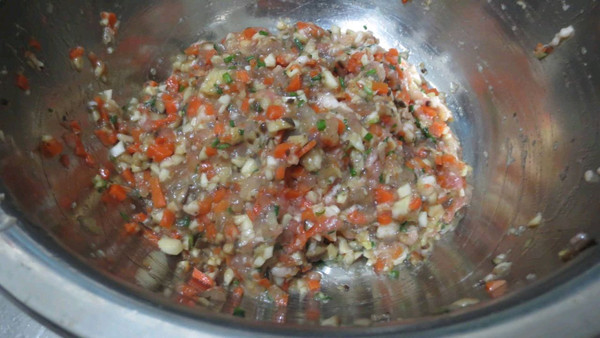 加入各种调料调匀备用,馅料最好提前备好冰箱冻下好办事一点。