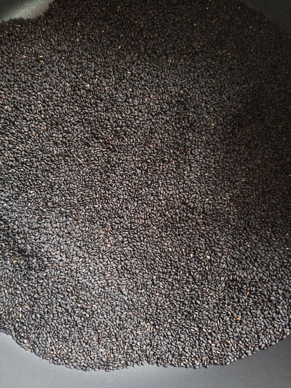 黑芝麻用水浸泡十分钟,然后用过滤的网子捞起漂着的干瘪芝麻,洗好后把芝麻放在,铺好布子的蒸屉上开始蒸。全程大火,蒸一个小时一定要把芝麻蒸透。怎么看蒸的芝麻是不是透了呢,蒸熟的芝麻明显大很多,软,皮轻轻一搓就掉了。