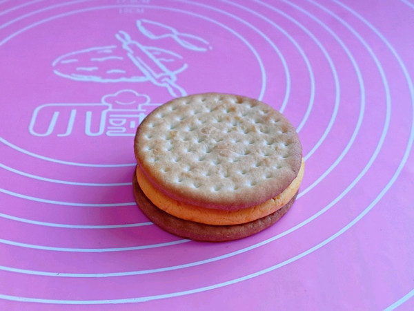 再叠加上一块饼干,轻轻按压一下。
