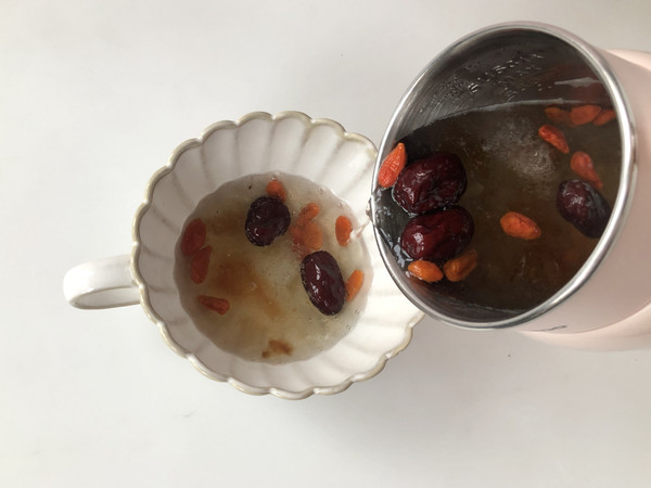 20分钟后,把枸杞和冰糖放入,再煲10分钟即可。
