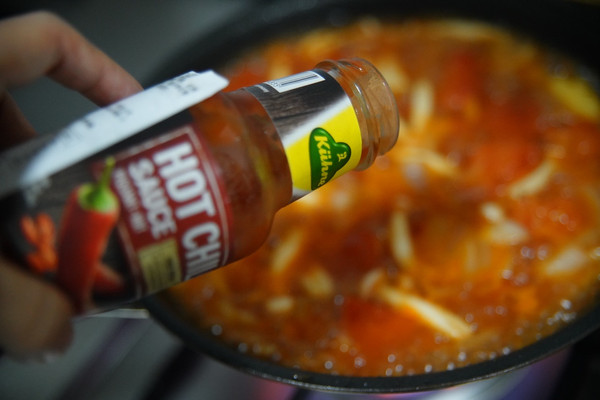 加入冠利辣椒酱,这个辣酱一点不辣,有浓浓的番茄香,特适合炖煮。