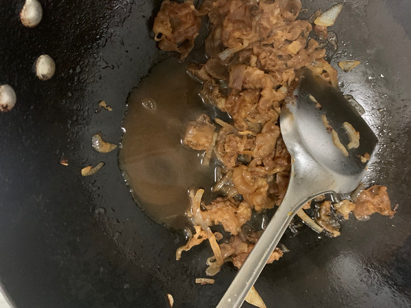 倒入肥牛翻炒,加料酒。