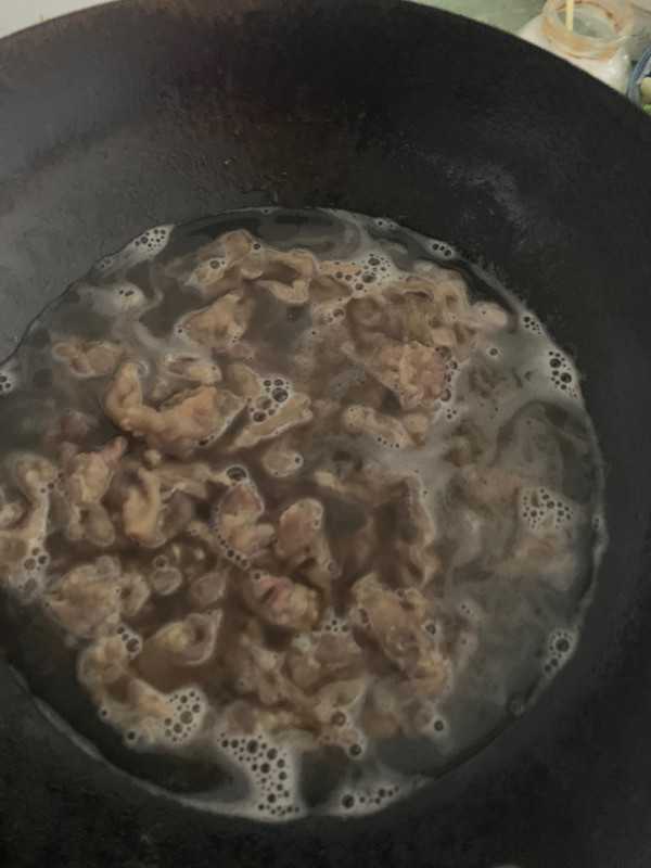 用焯完菜的水接着焯肥牛。