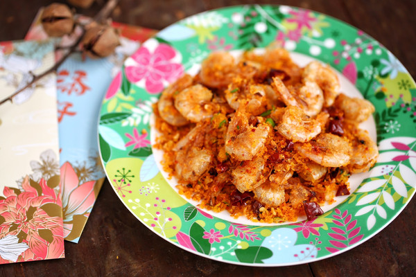北极虾洗净去头,葱蒜切碎,干辣椒剪碎