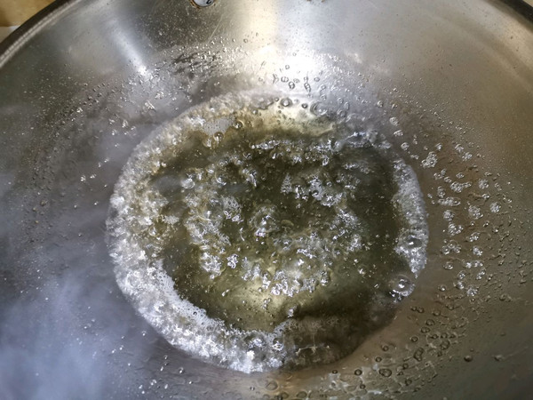 等待糖水变稠~锅里冒小泡了~加入一小勺白醋~搅拌均匀后关火~