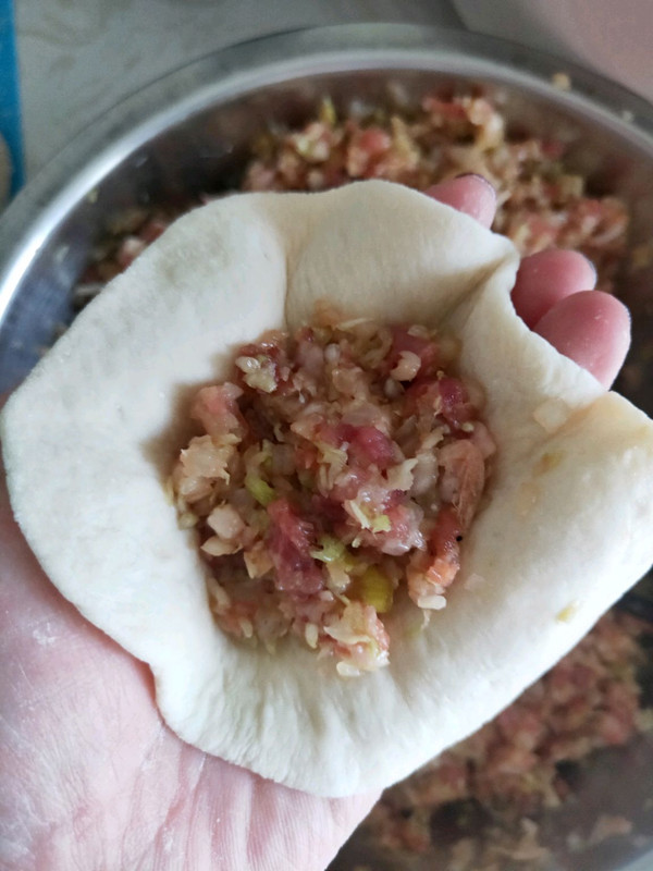 搅拌好的肉馅(可以尝一点点,如果觉得淡,可以依照自己的口味,放入精盐或生抽,如果觉得馅干,可以少加一点温水)