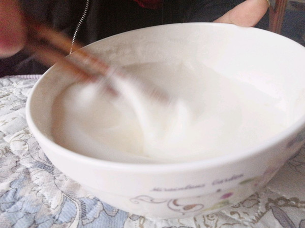 蛋白蛋清分离,疯狂搅蛋清,搅拌过程中,半杯白糖分两次加入,坚持住!四十五分钟打到筷子竖直不倒!(如果有白醋或柠檬加几滴进去,会更发)