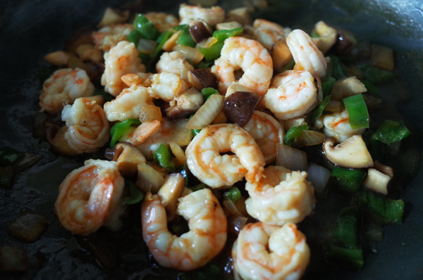 放入虾煸炒,加入生抽到8-9分熟