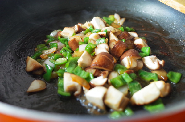 洋葱青椒蘑菇切丁