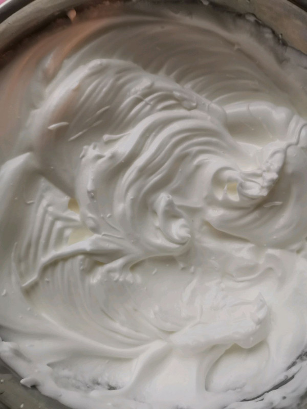 绵白糖分3次打发,提起打蛋器出现大弯钩湿性发泡