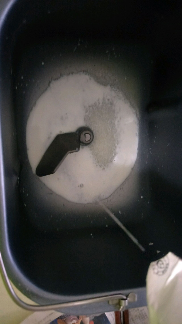 面包桶先称入牛奶白糖。
