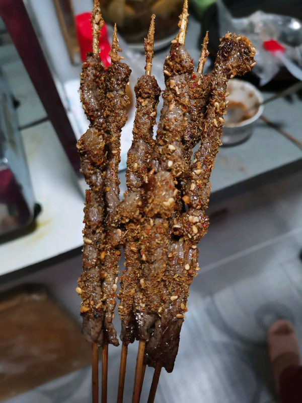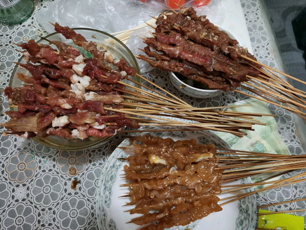 喜欢的肉切条,加料酒,生抽,葱段,姜片蒜片,洋葱段,花椒粒,蚝油,盐,一点糖提鲜,五香粉,黑胡椒粉(牛肉加,别的肉不喜欢可以不加),抓匀腌制30分钟左右