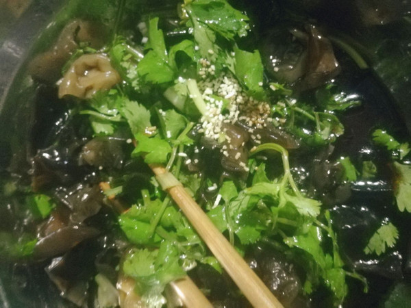 蒜米切碎,加入鸡精,蚝油,酱油,陈醋,香油