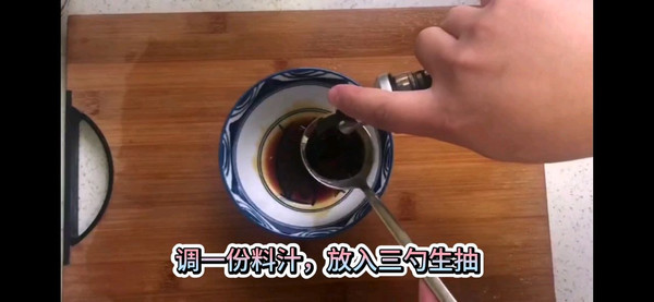 调一份料汁,三勺生抽,两勺醋,适量盐,适量白糖,一大勺老干妈,少许香油