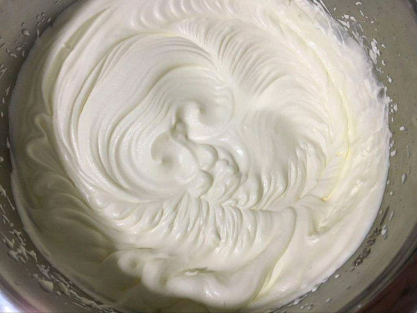 打发好的淡奶油,看到纹路了吗?忍不住尝了一口,味道不错